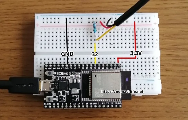1KΩ抵抗 ⇒ GPIO 32 ,GPIO 33